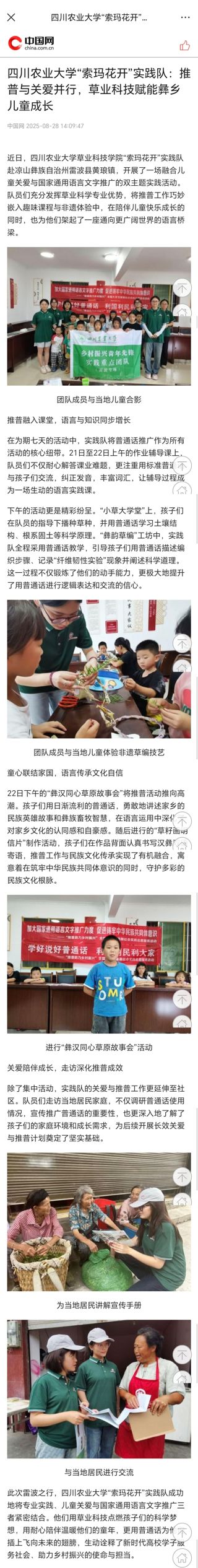 (中国网)四川农业大学“索玛花开”实践队:推普与关爱并行,草业科技赋能彝乡儿童成长