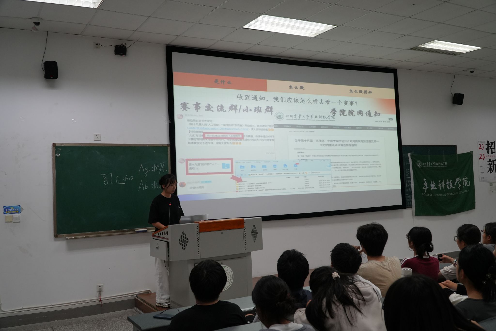 团委在4B-304教室面向2025级新生举办双创赛事分享会。本次分享会聚焦中国国际大学生创新大赛、“挑战杯”全国大学生课外学术科技作品竞赛、“挑战杯”中国大学生创业计划竞赛、中国青年志愿服务项目大赛等多项重要赛事,同时涵盖科研能力培养与论文撰写相关内容。