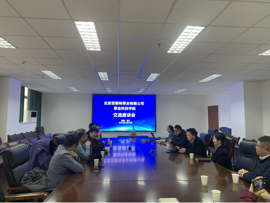 12月16日下午,北京百斯特草业有限公司邰建辉携酒泉市未来草业有限责任公司总经理董其军一行5人来院座谈交流。会议由张新全主持。